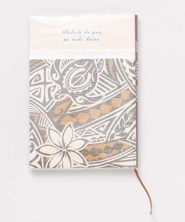クラシックで上品なポリネシアントライバルの中をホヌ(ウミガメ)が泳いでいるような柄の手帳。